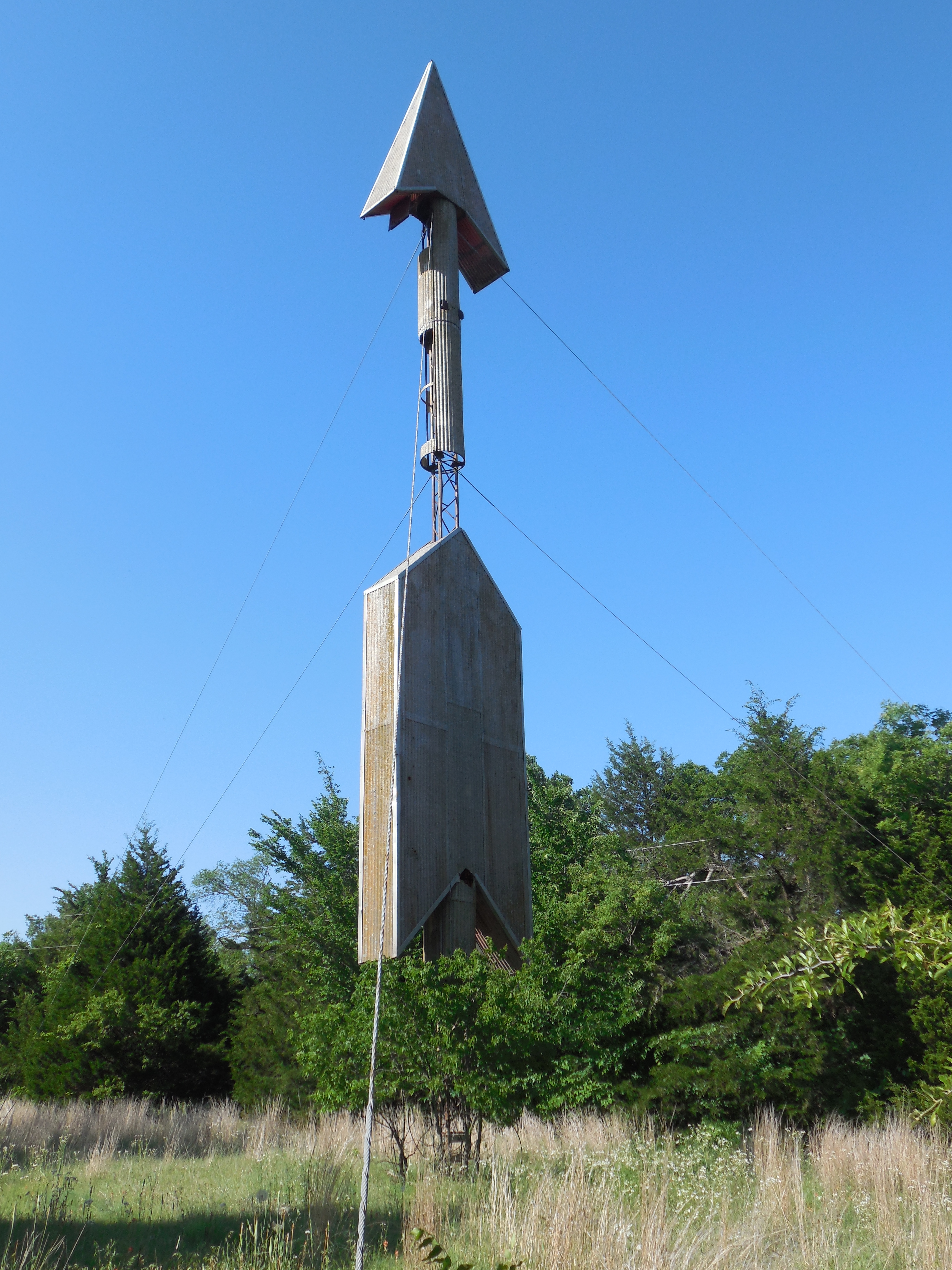 This tower stayed in the middle of the fairgrounds until 1967 when it was deemed structurally unsound and was removed. It was replaced the next year by the landmark we all know now as the Space Needle. What many do not know is that after removal, the arrow was cut down to about 80 feet and placed on land owned by an employee of the Utility Tower Company (who had originally built it) near SW 59th and Frisco Roads. Even though the property (called Odd Acres by some locals) has changed hands a few times, that arrow still sits on the side of the road. It’s no longer red and white and the atom is long gone (even though I’ve heard the rumor that it was placed on top of the current space needle, I can’t confirm this), it provides a great nesting place for birds. Just a piece of Oklahoma history, sitting in plain sight and unfortunately rotting away.