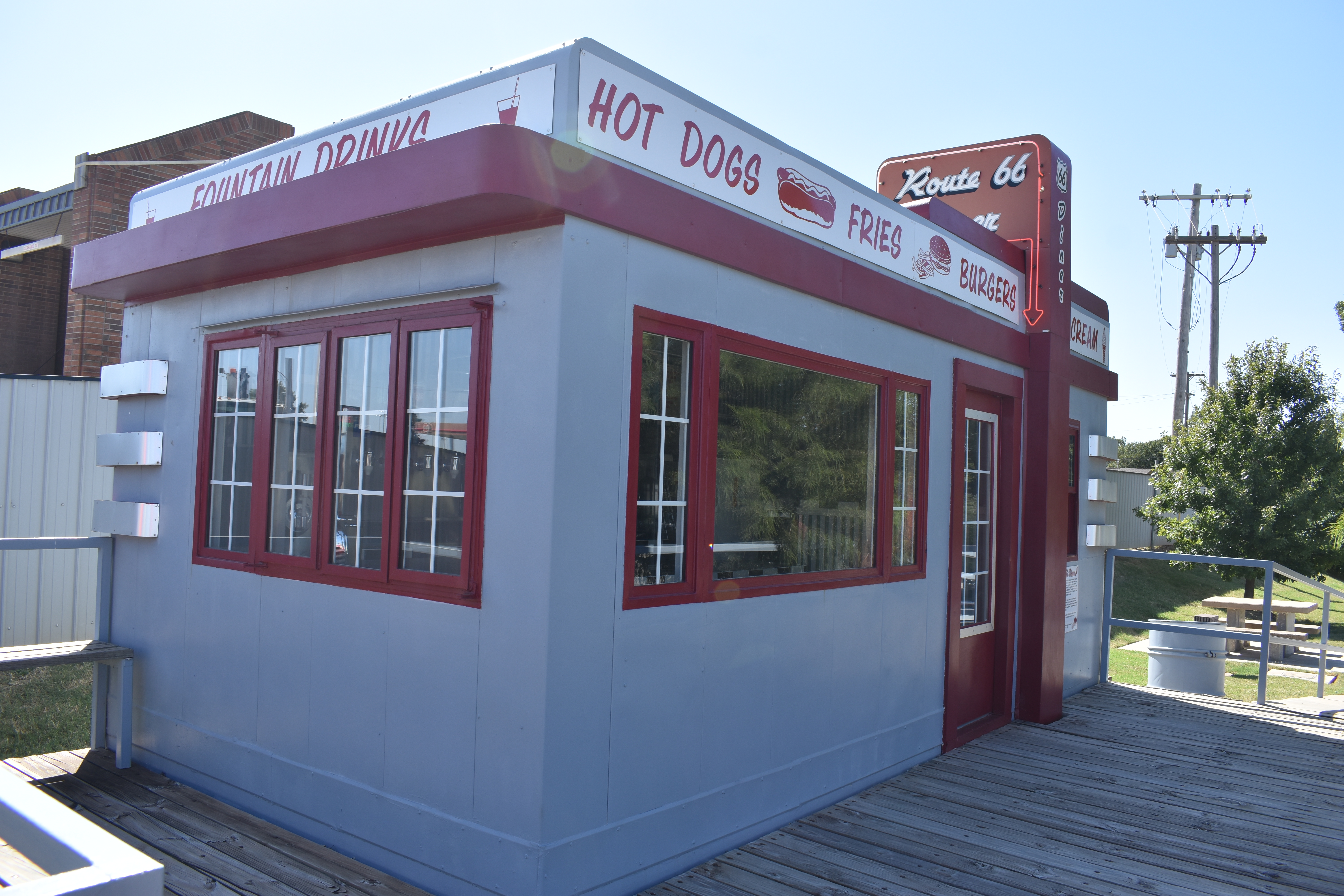 Reproduction of an old gas station on Route 66Reproduction of an old Ford used to take Oklahomans to California in the 1930’sOld VW Bus Diner moved to the museum site