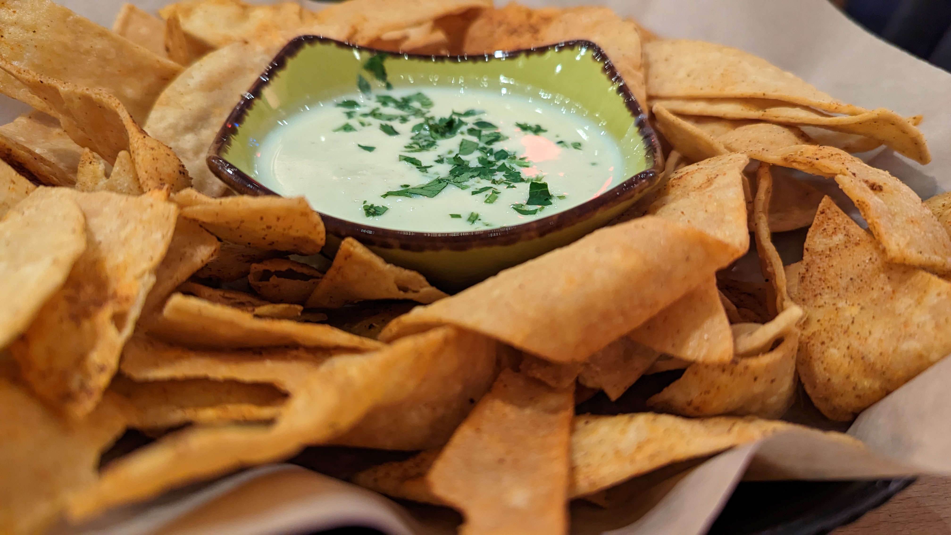 Being an introvert, I was apprehensive about going in, I could see they were really busy with the Friday night crowd but Big K wasn’t going to let that deter us. He went in and found out they had tables open, so in I went. They mostly specialize in tacos but have a few other items as well. We started with just basic chips and queso. These were awesome. The chips were fried flour tortillas with seasoning on them and the queso had a tang to it, I would have these everyday if I could. I went with the coconut shrimp taco and brisket barbacoa taco with the sides of waffle fries and cilantro lime rice. The tacos were good sized, the coconut shrimp taco had a nice pile of slaw on top, gave it a beachy type feel. The brisket barbacoa taco also had the slaw with some cotija cheese on top, the brisket was cooked perfectly, melted in my mouth. The cilantro rice was really good, had a light flavor to it. And the waffle fries were perfect, not those sad ones you get from Chick-fil-A. These were fried crip with seasoning over them that gave them a great flavor. I also had a lavender berry margarita, this was a real treat, sweet with a touch of lavender flavor. Big K had the chorizo guac taco and a quesa carnitas taco with the sides of zesty slaw and elote. He loved both tacos, they had crispy cheese fried onto the tortillas. He thought the slaw had a flavor that was different, and he fell in love with the elote (elote is grilled street corn, I tried a bite and it was good).