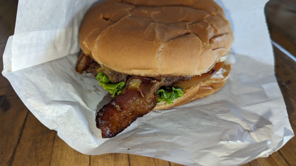 Overall, I really liked The Brown Bag. The prices weren’t outrageous and the food was good. They also serve tacos and chicken strips, I’ll have to try those the next time. I’ll give it 5 strips of bacon.