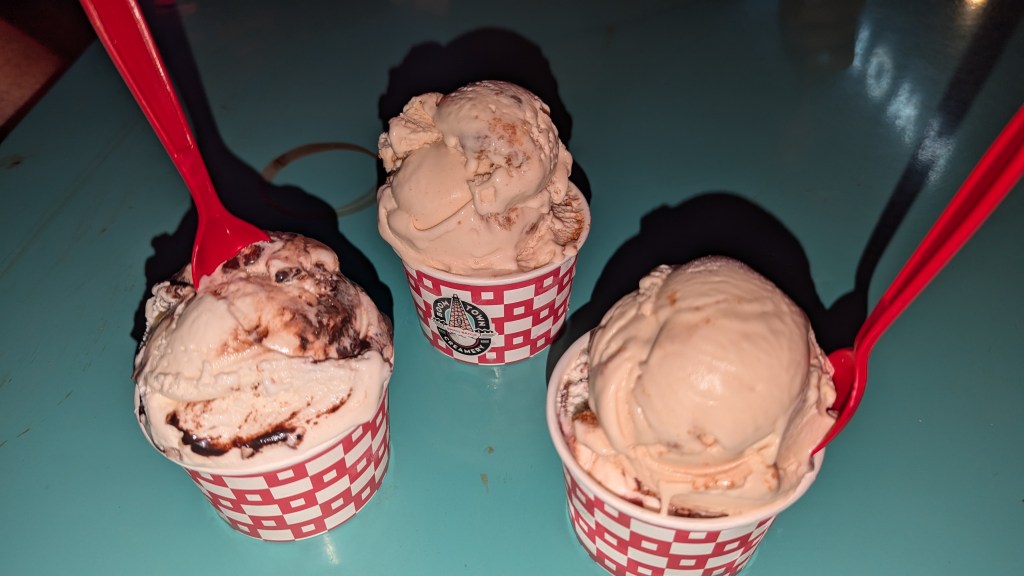 This location is a bit closer to home, so much easier to access. I’ve stopped in several times and always have a great experience. Their ice cream is made in small batches with several flavors available. They can serve the ice cream in a come or cup, or if you are adventurous, a flight. They also have pints to take home. They do have several flavors, I have tried the chocolate tornado, cherry goat, cookies and cream, and cookie butter. They are all smooth and flavorful, you can’t take a bite without tasting the add-ins, which is a good thing when it comes to ice cream. What I have loved the best with every flavor is the consistency of the smoothness, it is more like a frozen custard than ice cream.
