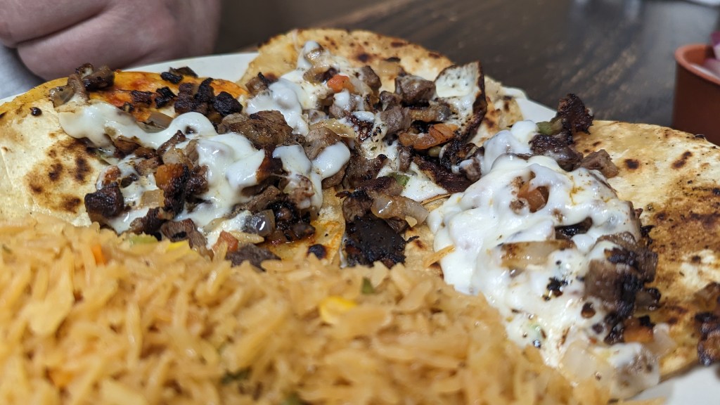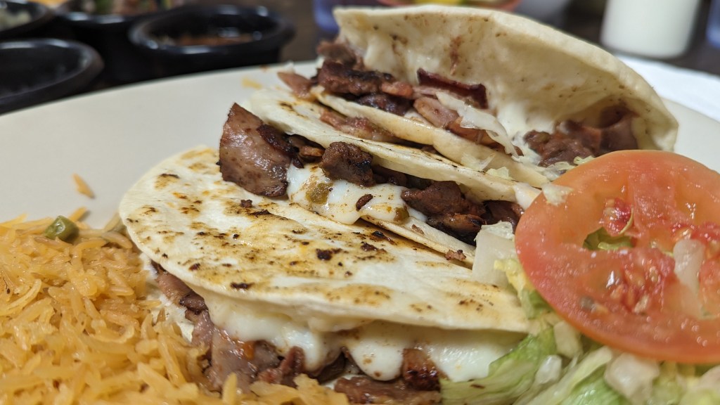 It’s located on the east corner of the downtown area, just a small restaurant. You can park on NW 39th or drive around back to the larger parking lot. Once inside, we are always seated quickly. Fresh corn tortilla chips along with really good queso and salsa are brought to the table. The salsa is fresh and not to spicy, the queso is creamy with a touch of sharp flavor. I have gotten the beef enchilada dinner a couple of times and it has been great. Always cooked to perfection, the ground beef has a nice flavor. But my new favorite is the tacos diaz, 3 flour tortillas filled with steak, ham, bacon, onions, peppers, and mozzarella cheese. These are wonderful, the different flavors just compliment each other. The meat is grilled and is tender, the veggies are also grilled and liven up the taco. It’s served with rice and beans. The rice is good but I really like their beans, I have tasted bits of bacon in them which I love.